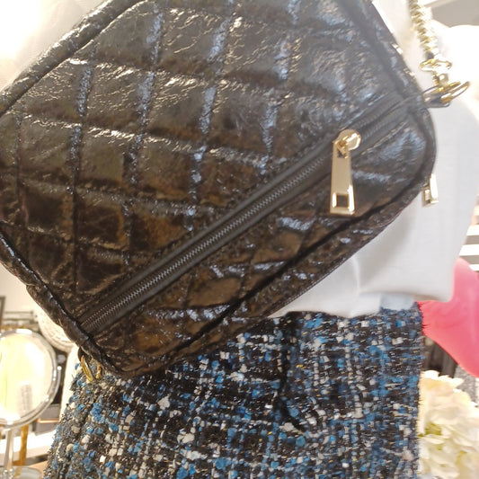 MIA | Black Metallic Crossbody Bag With Gold Chain Strap